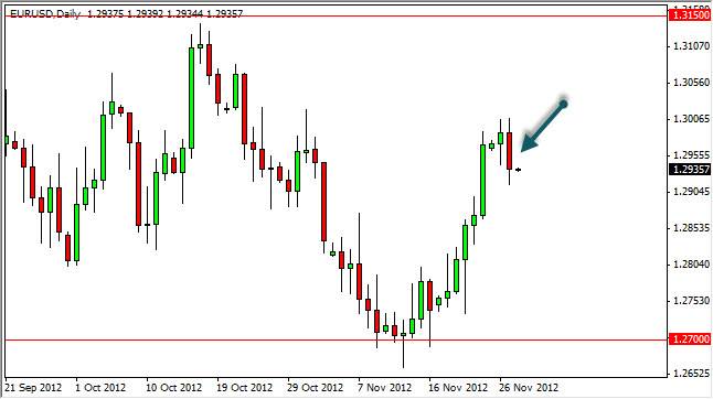 The "fiscal cliff” in the United States will certainly dominate the headlines and move this pair quite often, as will the European debt crisis. It's almost like the markets are stuck in some type of negative feedback loop at this point. It doesn't matter what type of trading you practice, it you simply must understand that we are in a headline driven market currently.