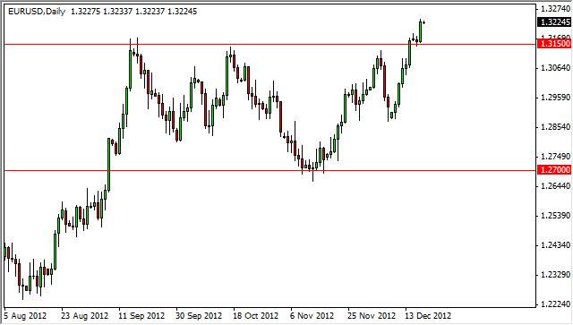 The EUR/USD pair had a strong showing on Tuesday as the 1.3150 level now looks to act as support. Although I have been bearish of the Euro recently, and therefore not involved in this pair, I still believe that there could be a serious problem facing Europe soon. However, it is obvious that the market is focusing on the Federal Reserve and its actions, as well as the so-called "fiscal cliff" discussions going on in Washington DC.