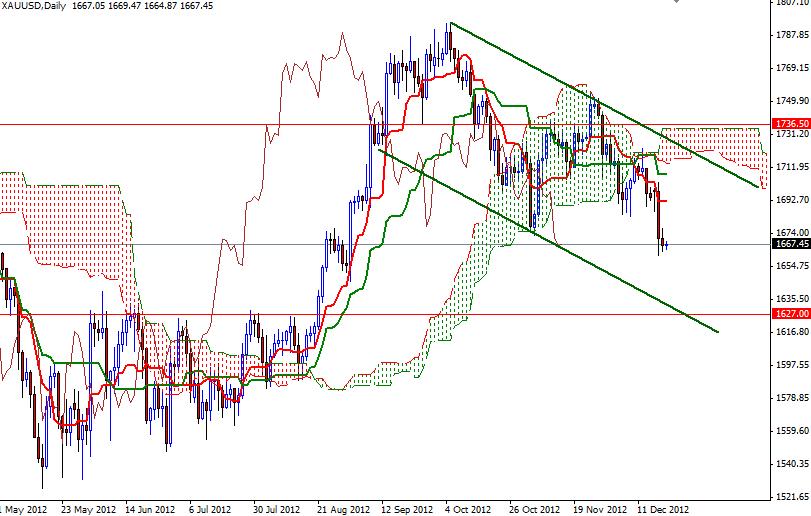 If the bears continue to dominate the pair and drag prices below the 1660 level, we may see another sell-off which will target the 1627 level (the bottom line of a descending channel). On its way down, expect to support at 1651, 1645 and 1638. However, if the bulls take over and push the pair above the 1677 level, we may see prices climbing towards the ascending trend line which was broken 2 days ago. To the upside, resistance may be found at 1685, 1692 and 1700.