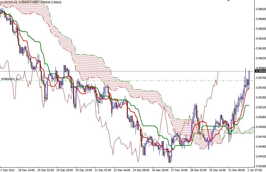 Description: The AUD/CHF pair continues to climb since the pair found support and reversed at 0.9433. We have bullish Tenkan Sen – Kijun Sen crosses on both 1H and 4H charts. Prices are also climbed above the Ichimoku cloud on the 1-hour time frame.