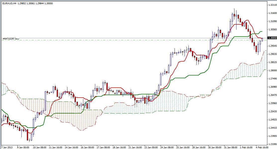 Description: The EUR/AUD pair has managed to climb above the Ichimoku Cloud on the weekly chart indicating that the bulls are firmly in control. Pattern on the 4-hour chart suggests the recent retracement is over and the pair is ready to resume its up trend.