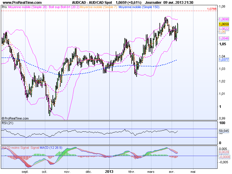 The AUDCAD pair has been in an uptrend for several weeks and could test its major resistance at 1.0760 in the coming days. In terms of technical indicators, the RSI stays well directed above its neutrality area while the MACD still in positive territory, is about to cross its signal. In this context, the support on the lower Bollinger band can be taken advantage of by investors. Direction: Up Entry: 1.0659 Stop-loss: 1.06 Take-profit: 1.0750