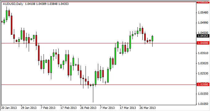 The AUD/USD pair fell during the first part of the session on Monday, but as you can see clear the 1.04 level on the bounce as we await the monetary policy statement from the Reserve Bank of Australia. Because of this, it appears that the market is expecting good news, or at least no bad news. The 1.04 level has been an area that I've mentioned previously, as I see it is the "happy medium" of the market right now as we have been consolidating between the 1.02 level and the 1.06 level for roughly 18 months.