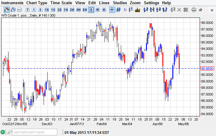 As far as buying is concerned, I am not interested anymore as I think this market has found a temporary top at the $95.00 level, and we certainly have quite a bit of selling pressure between here and there. The US Dollar should be watched as well; as if it carries strength going forward will certainly work against the value of oil simultaneously.