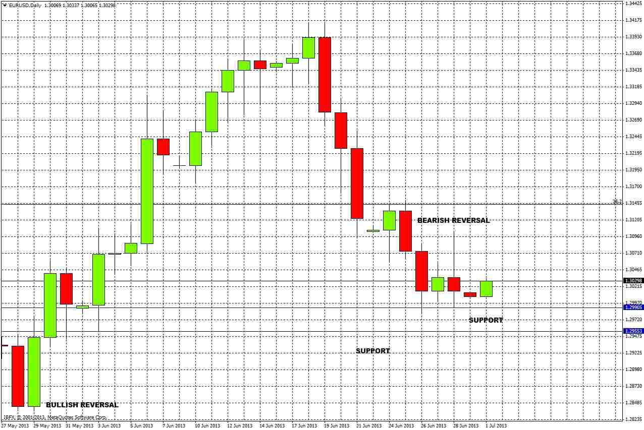 If the price breaks below 1.2955 it will need some momentum to penetrate the low of the bullish daily reversal of 29th May.