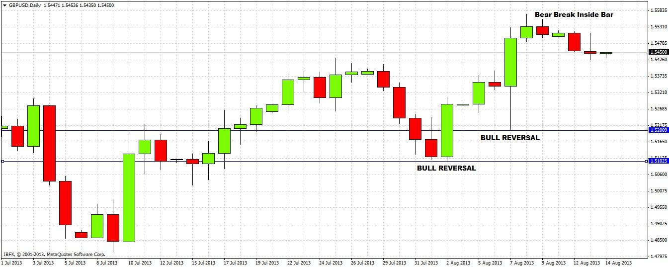 However my second prediction about the weekly close was wrong, despite the week closing very bullishly near its high and above 1.5305, it did not really break the high of that daily bearish reversal at 1.5389. The lesson here is that reversals on lower time frames can provide a warning that the signal from a higher time frame is becoming invalid.
