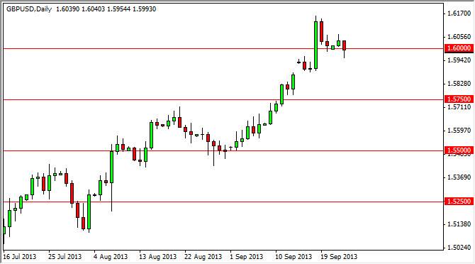 The GBP/USD pair fell during the balance of the session on Tuesday, as we continue to focus on the 1.60 handle. Quite often, you will see markets focus on one particular level for a while before taking off. I think that's happening at this moment, as the 1.60 handle of course is a large round psychologically significant number. With that being the case, I feel that the fact that the buyers managed to push the market back towards the 1.60 handle, and more importantly form a nice looking hammer, that we will see markets try to go higher from here and a move above the top of the hammer would in fact be reason enough to start buying in my opinion.