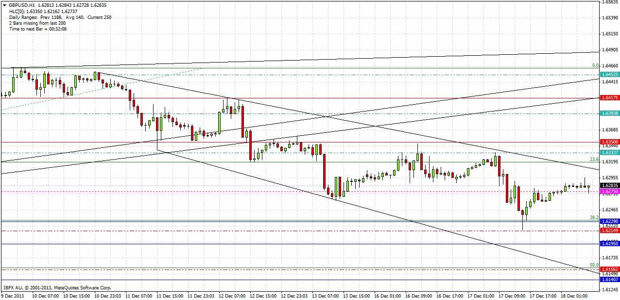 The long touch trade at 1.6230 in yesterday’s signals was triggered towards the end of yesterday’s London session. The trade turned profitable almost immediately and reached the first exit of 1.6250 where 80% of the position was to be taken off. It was recommended earlier today in a previous update to take the remaining 20% of the position as profit for reasons that will be explained in the analysis below. At the time of writing the price was about 1.6281 so that should have given approximately 50 pips on the 20% and 20 pips on the 80% giving a total of about 26 pips. This was less than risk but it was deemed to be a very high-probability trade.