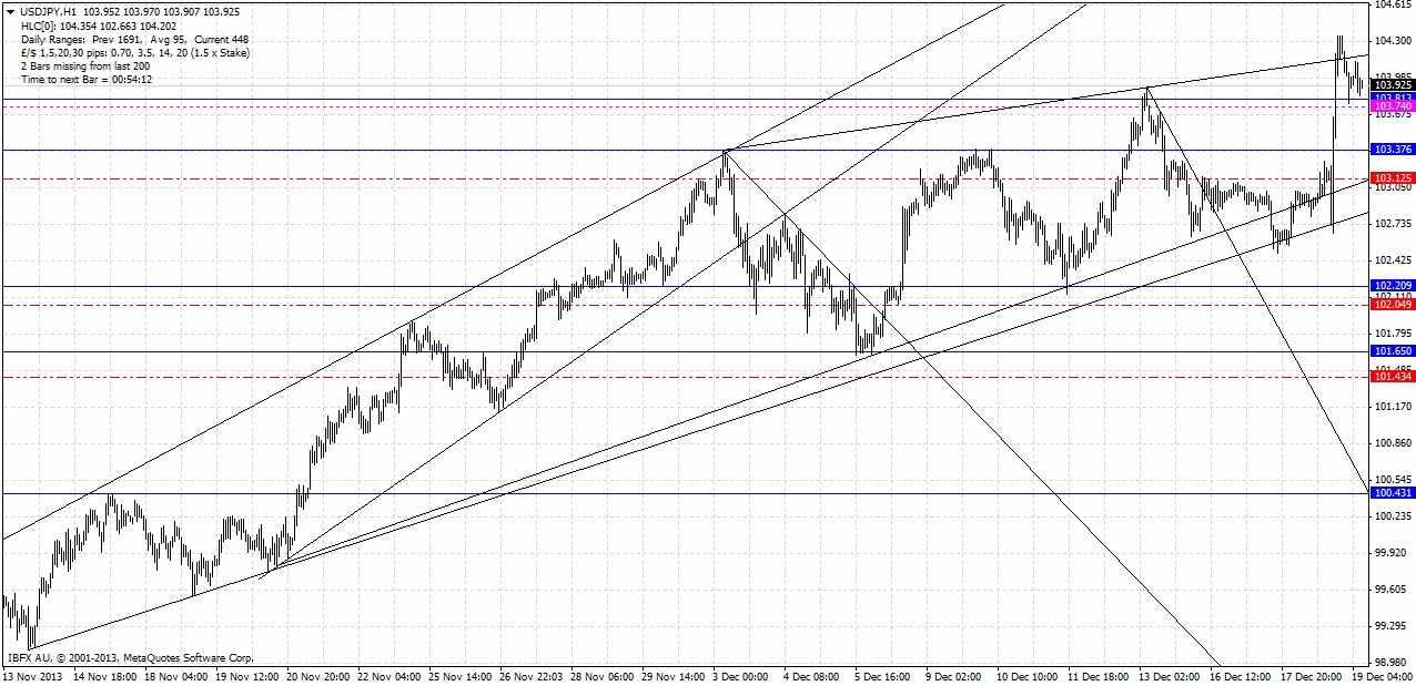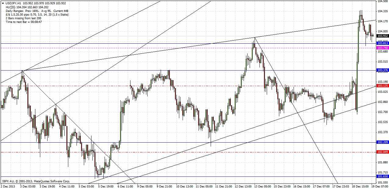 Enter long at the next bar break of an hourly pin or strong outside bar rejecting and closing above 103.37 and one of the bullish channel trend lines. Ideally the bar would also reject today’s S1 daily pivot point at 103.12. If this level is not touched and rejected by the same hourly bar, or if an hourly bar closes more than a few pips below it, the trade is immediately invalidated and should not be taken.