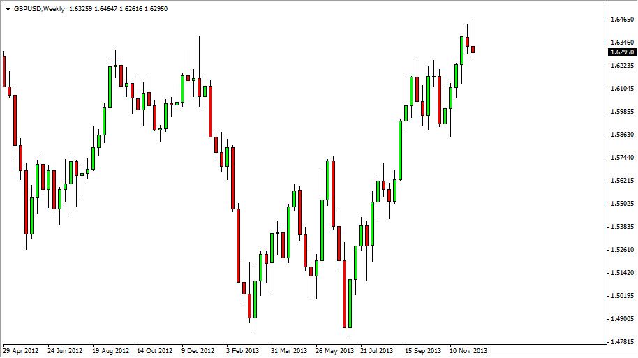The EUR/USD pair rallied most of the week, but as you can see, struggled to get above the 1.38 level. The pullback caused a shooting star to happen, and because of this I expect the market to pull back even farther. The 1.36 level below should be supportive, but I could also see the possibility of a move as low as 1.33 if we get below that aforementioned 1.36 support area. The end of the year could also cause a few liquidity issues, so perhaps we just chop sideways. In the end, I think we will eventually find buyers to push this market to the 1.40 level. The question now is whether or not we pullback first.