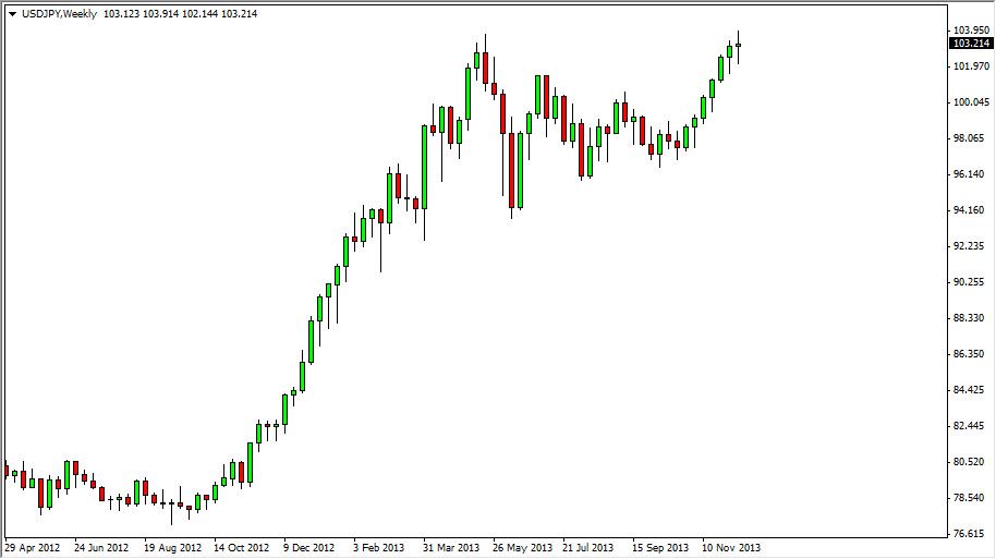 The GBP/USD pair rallied during the bulk of the week, but pulled back from the 1.6450 area, an area that continues to show signs of resistance. This pair is very bullish overall, so I am not selling – no matter if there is a shooting star or not. I see significant support potential at the 1.62 level, the site of the most recent breakout. This pair should continue to go higher, but only after the New Year in my opinion. This market is blocked by the 1.65 level as far as I can tell, so I am buying a supportive candle lower, or a break above that level.