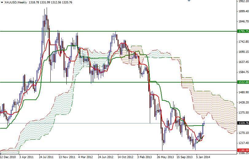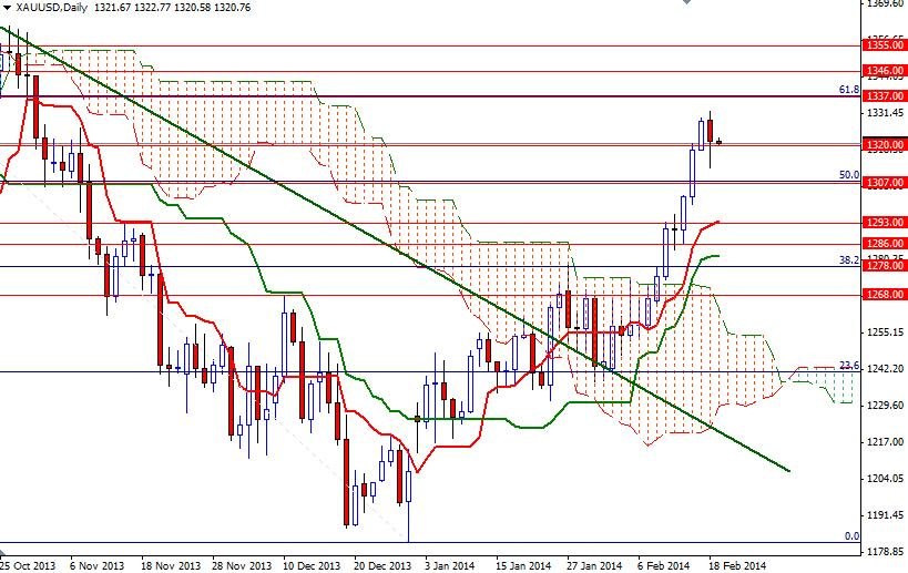 In order to tackle the 1337 level, the bulls will have to break through an interim resistance at 1325. Closing above 1337 (61.8% retracement based on the bearish run from 1433.70 to 1182.35) indicates that the 1346 and 1355 levels are next possible targets. If the bears increase pressure and prices fall below 1320, expect to see some support around 1316.11 - 1315. Breaching this area might give seller the extra fuel they need to visit 1307. Closing below 1307 means we are heading back towards the 1296.30 - 1293 area.