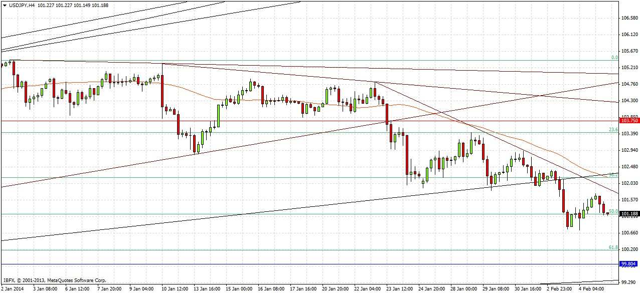 The strong down move has slowed, although we have a bearish upper trend line pacing the move which is still intact, and the price is still swinging down as can be seen in the chart below: