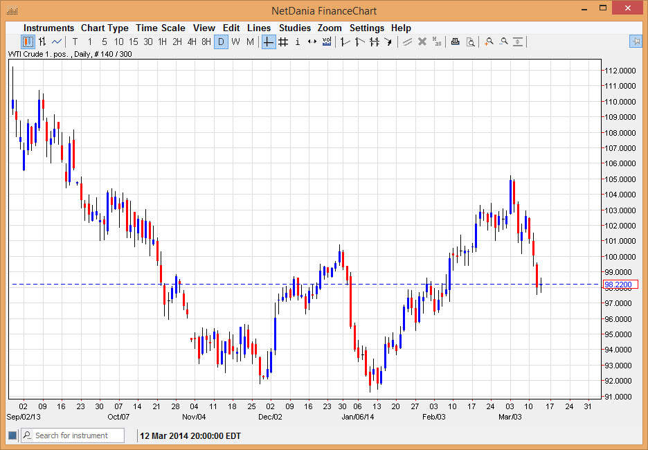 With that being said, I see quite a bit of support only down to the $95 level, and quite frankly underneath there as well. I just can’t feel comfortable selling this market even though we had significant selloff previously, the move higher certainly has made a much higher high then we had at the end of the year, so buying all accounts, if we can find some type of supportive action soon, it is the very definition of an uptrend.