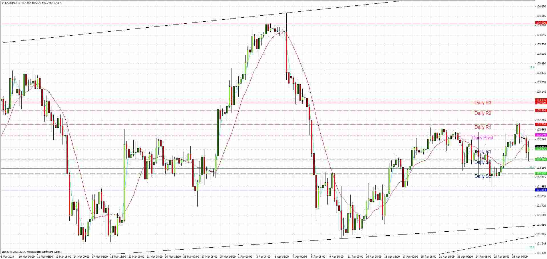 As forecast yesterday morning, the action yesterday was initially bullish and we did reach 102.75 which is a significant swing high. However we then went on to print a bearish pin bar on the daily chart as the price fell and was unable to get beyond the 102.75 level.