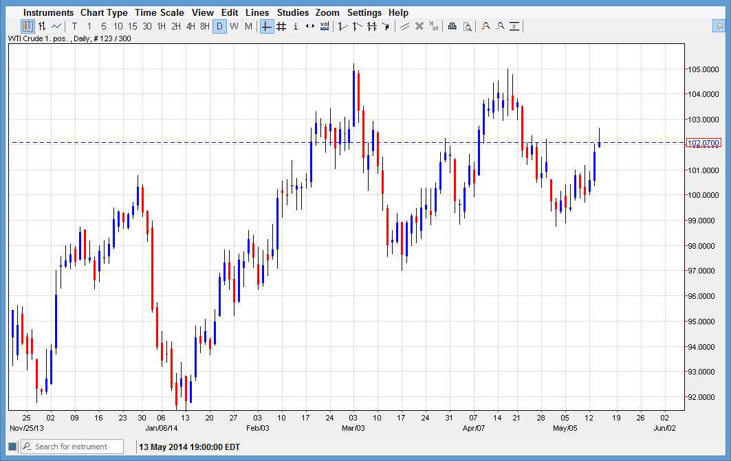 I believe that the best way to approach this market will be to buy on the dips, based upon short-term charts but not forgetting that the longer-term charts lead the way. We have obvious support and resistance areas between here and the $105 level, so expect choppy conditions. However, if you look at the overall attitude of the market, you can see that we have been grinding our way a bit higher. In fact, it could possibly be that we are forming some type of ascending triangle, which of course would be bullish as well.