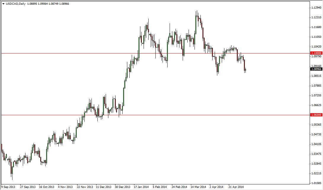 The USD/CAD pair did very little during the session on Wednesday, as we continue to hover just above major support. When you look at this chart, you can see that the 108.80 level has been supportive a couple of times in the past, and as a result we are testing the very bottom of the larger consolidation area. I won’t lie, this market looks very broken at the moment. However, the fact that we did in fact respect that support level during the session on Wednesday and didn’t make any serious attempt to break down leads me to believe that perhaps the buyers may make it stand here.