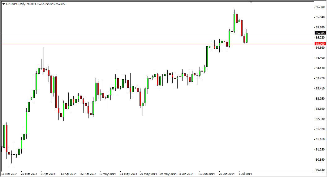 The CAD/JPY pair bounced hard during the session on Wednesday, using the 95 level as work. That being the case, the market looks as if it has respected the previous break out, and that break out has shown that the former resistances now support. With this, I believe that the market should be free to go much higher. Interestingly enough, this market does tend to move based upon oil prices as Canada is a major exporter, and Japan imports 100% of its oil, so the fact that the oil markets look very weak at the moment is a bit counterintuitive.