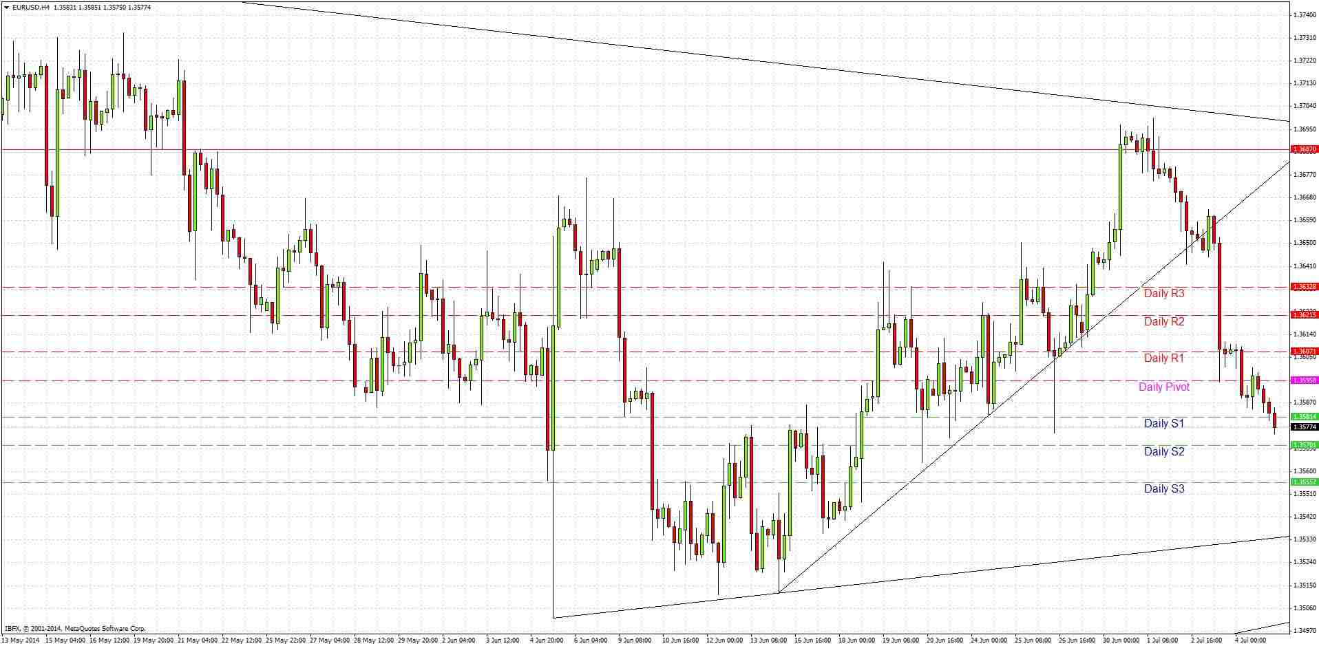 There are no clear, well-defined levels at which to look for reversals between a short-term bullish trend line at around 1.3534, and the flipped resistance at around 1.3687.