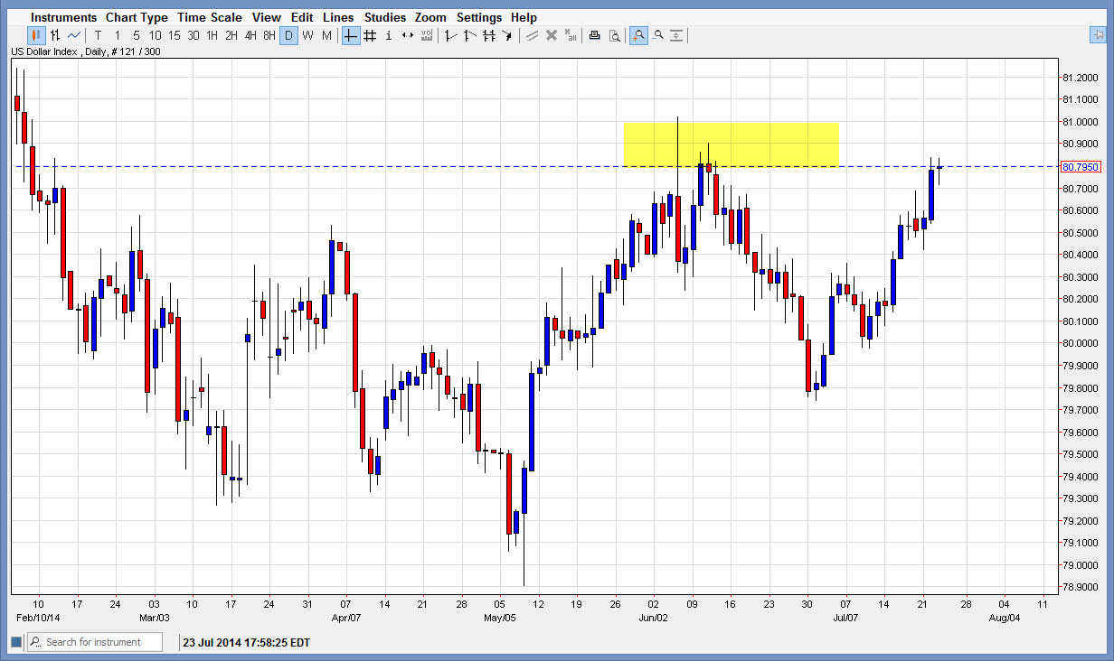 However, the US Dollar Index can be expensive if you have to go through the futures market. There are binary options available, as well as longer-term options. Ultimately though, I do like looking at this chart as a general idea of where the value of the US dollar should go overall, and therefore look for the weakest currencies to match up against it if it is going higher, and vice versa if it is going lower. Either way, this is a market that you should be paying attention to.