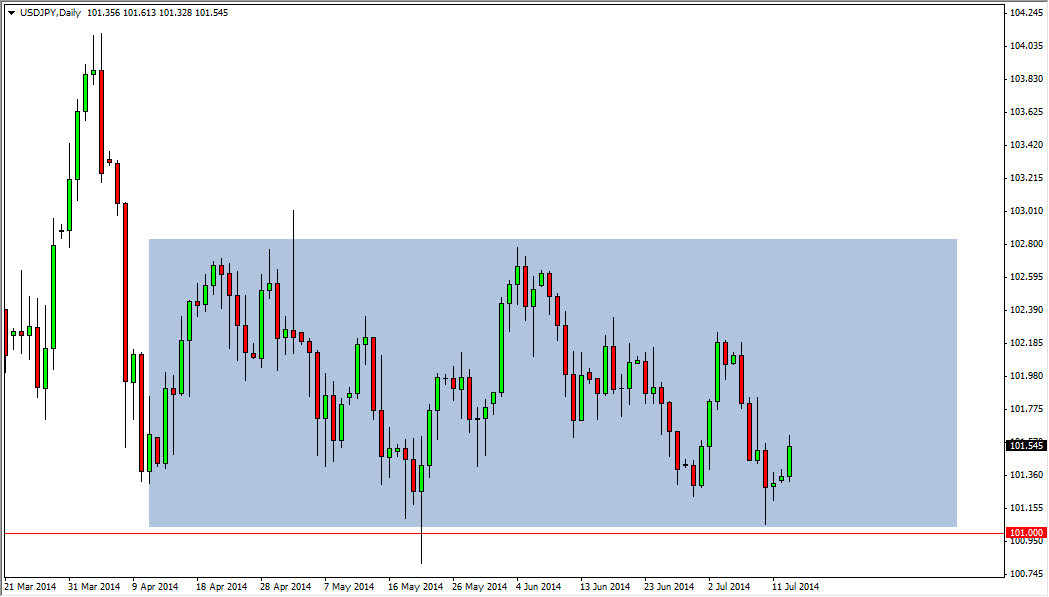 The USD/JPY pair rose during the course of the day on Monday, continuing to show that there is in fact some type of support down near the 101 level, as it has been the bottom of a larger consolidation area for some time now. In fact, one could even make an argument all the way back to the beginning of the year, and therefore means that is without a doubt a very strong consolidation area. In an area like this, and especially one that hangs on as long as this one does, there can be big money to be had.