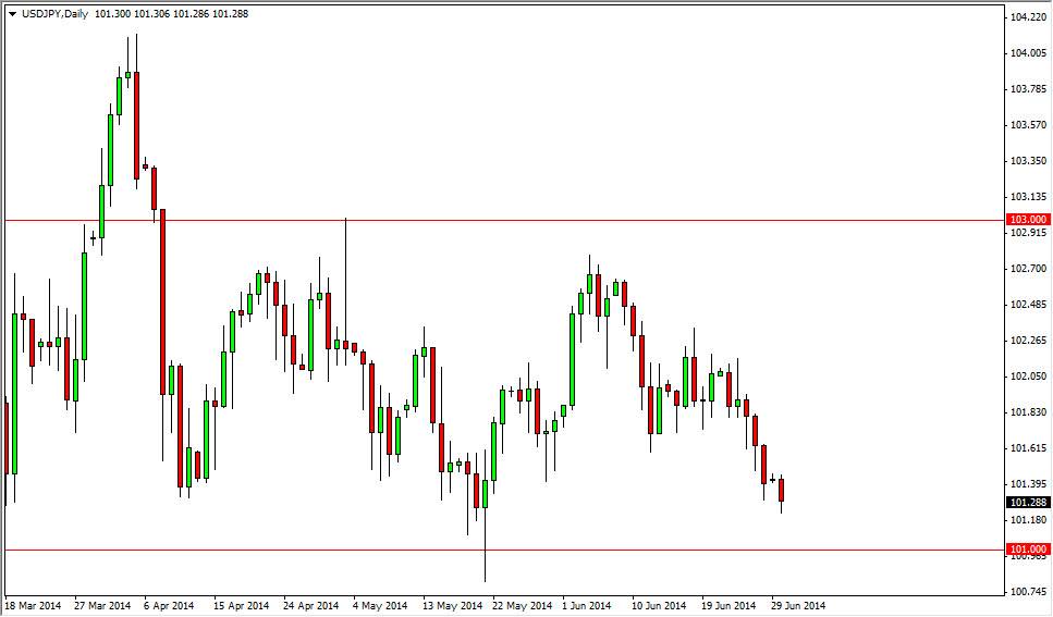 I personally believe that this market is going to bounce between the 103 and the 101 levels. This is a good opportunity as far as I can tell, simply because there is without a doubt a defined and obvious consolidation area. This is the best type of range trading that you can find, and the fact that we have the summer coming certainly doesn’t hurt the situation going forward, because the summertime often will find the market is going sideways anyway. With that, I am very encouraged by the potential range trading that we can see, believing that short-term traders will continue to cash in on a very profitable marketplace. However, if we break out of that range, there is the possibility that we could see a larger move. At this moment in time though, I give that about a 10% chance.