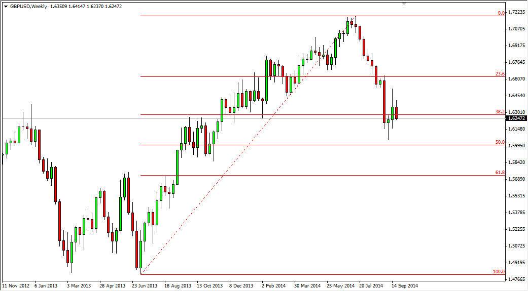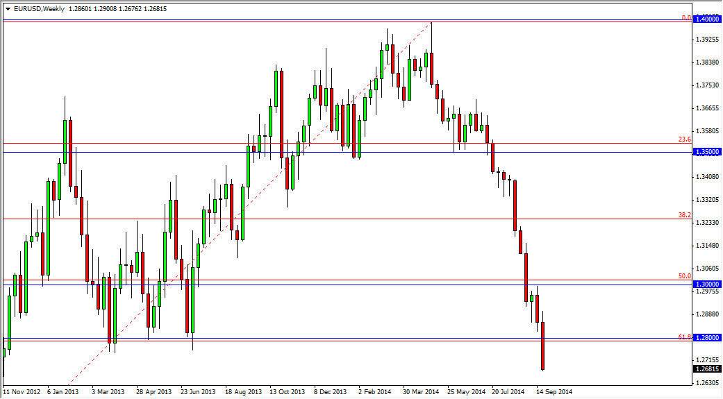 The EUR/USD pair sliced through the 1.28 support level during the course of the week, and also broke down below the 61.8 Fibonacci retracement level from the larger move. With that, I feel that this market is ready to continue going much lower, even though we are most certainly oversold at this point in time. I believe that rallies will continue to offer value, and as a result I will be selling this market every time it bounces. I believe that ultimately we go to the 1.25 level, and then probably much lower, possibly as low as 1.20 given enough time.