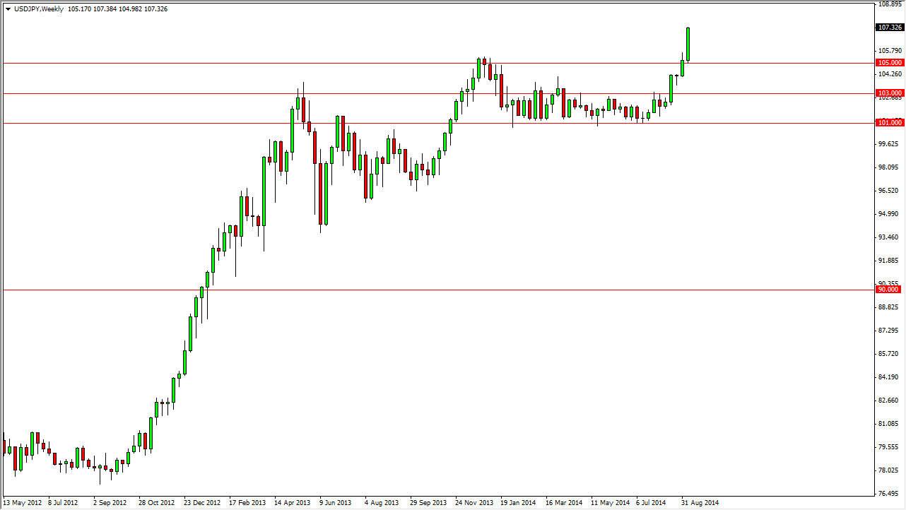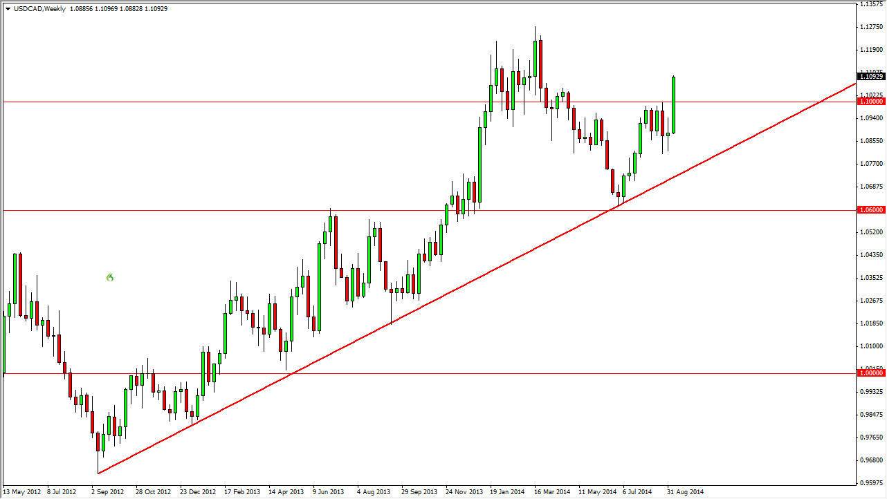The USD/CAD pair is very bullish, and over the last week finally broke out above the 1.10 level on a weekly close. Because of this, I think that the market will be a “buy on the dips” type of market, and as a result I am very bullish this market and will continue to buy it every time it pulls back. Ultimately, I think this market goes to the 1.15 handle.