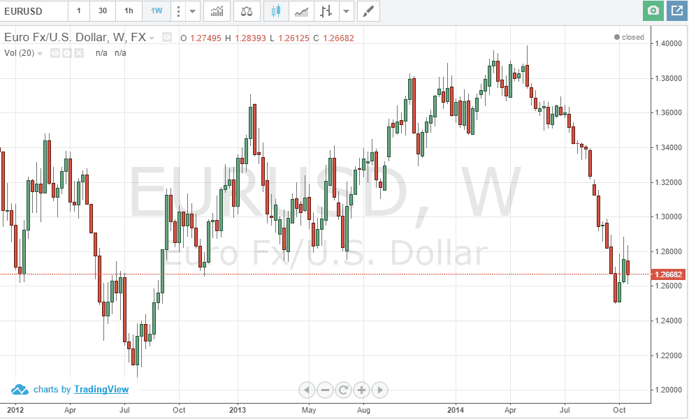 The EUR/USD pair originally tried to break out of all the point to a level during the week, but as you can see struggle about that area and therefore continues to show that the sellers are most certainly in control over the longer term. With all the concerns coming out of the European Union, this of course isn’t much of a surprise. I believe that the market will continue to drop from here, and probably head towards the 1.25 level. It’s in that area that I would anticipate a significant amount of support to be found yet again, however I believe we will continue to go lower, and head towards the 1.2050 level.