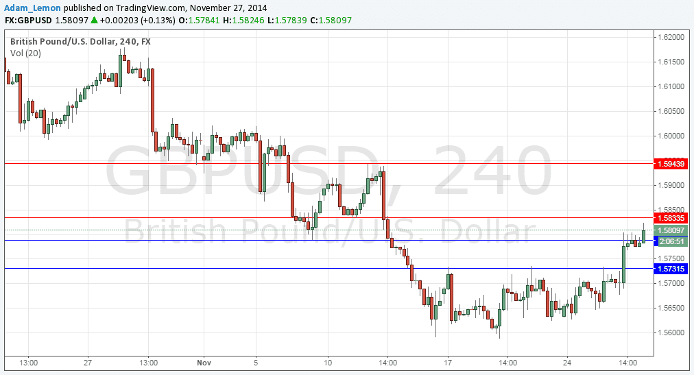 There is local resistance at 1.5833, and after that the way is clear to 1.5933. The level at 1.5789 may also become supportive, but today is probably too soon to seek a long trade from there.