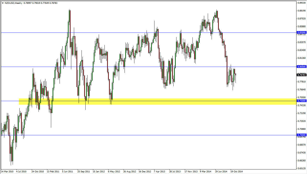 Be going to have to be very careful this month, as an already fairly illiquid market is going to become even more erratic due to the fact that volume will drop off in the last two weeks of December. However, I believe that it’s fairly safe to say that the 0.81 level above will bring in quite a bit of selling pressure, which of course starts at the round figure of 0.80 or so. With that, I believe that selling rallies will be the way going forward, as you may perhaps get lucky and see an absolute meltdown to the 0.75 handle. Nonetheless, I would not advise taking a large positions in this pair until January.