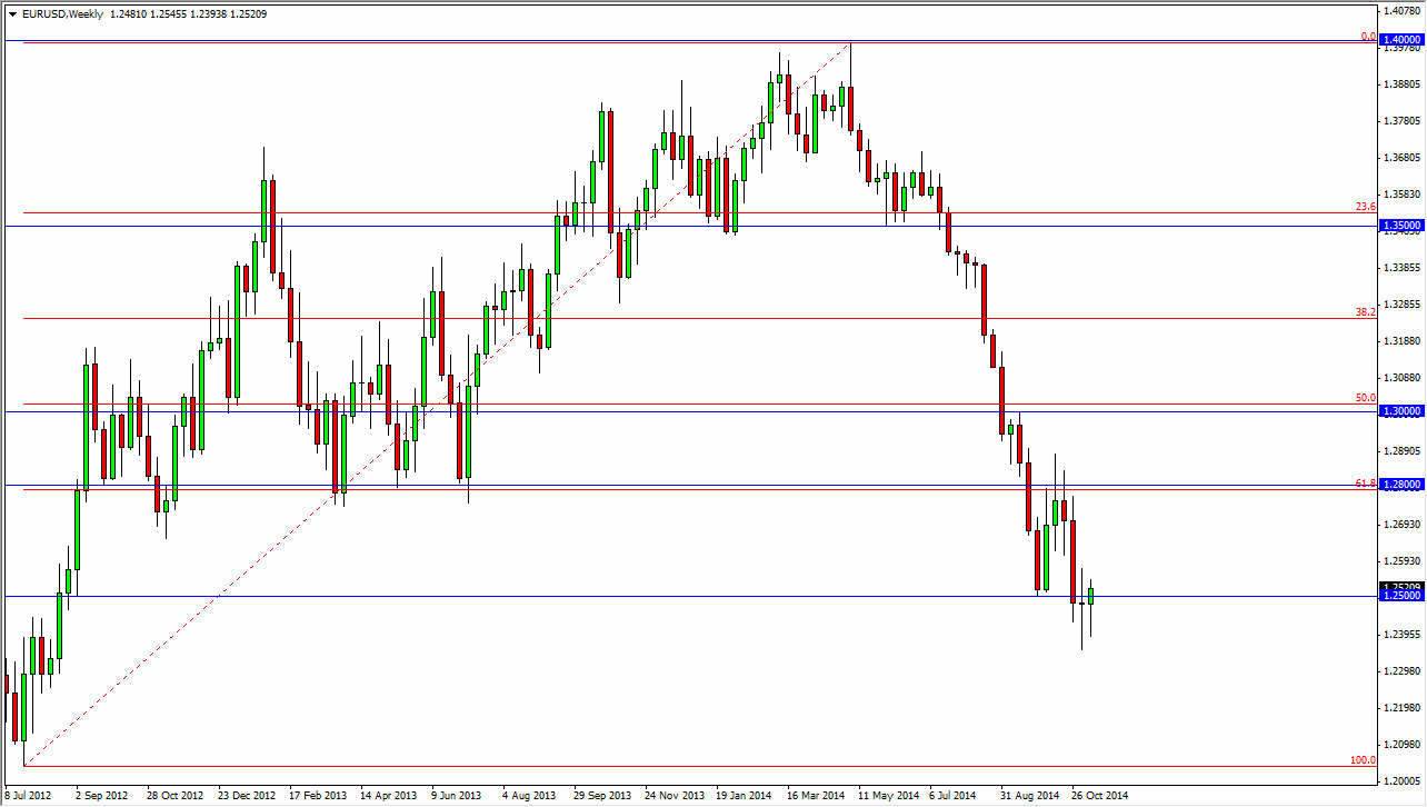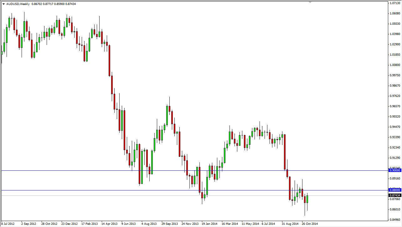 The AUD/USD pair fell during the beginning of the week, but did find enough buyers to turn around and form a hammer. This hammer of course suggests that we could bounce from here but there is a significant amount of resistance just above. Ultimately, I feel that this market will go a bit lower but we certainly don’t have the candle to start shorting yet. With that, I am bearish but also going to be very patient.