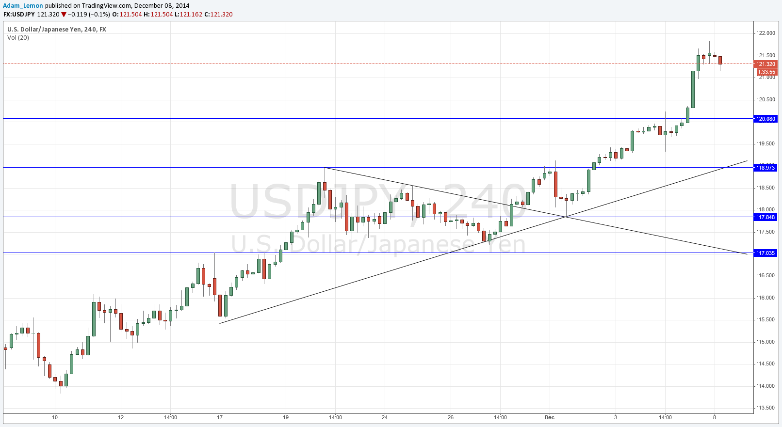 This pair just keeps going and going, just when it is tempting to think it cannot go any further. The key psychological number of 120.00 was broken quite easily and we are even well beyond that, past 121.00.