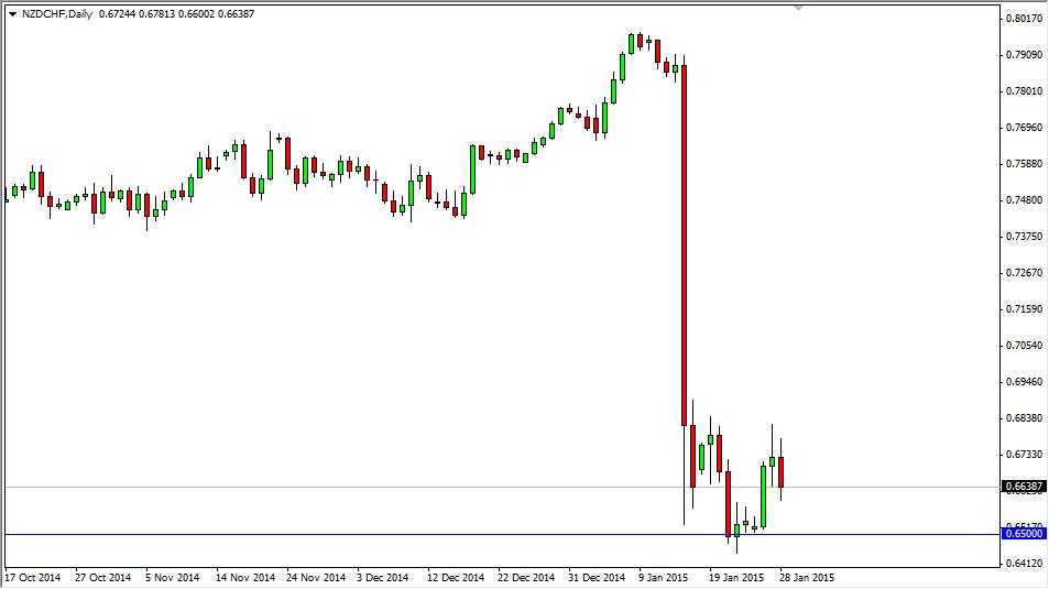 The NZD/CHF pair initially tried to rally during the course of the session on Wednesday, but as you can see turned back around and started to fall. There a lot of different things going on right now, but the Royal Bank of New Zealand stating that it was worried about the economy, and the fact that it could possibly cut rates in the future of course drive down the value of the Kiwi dollar. On the other hand, we have the Swiss National Bank recently removing the currency peg, and that of course has driven a lot of demand for the Swiss franc going forward.