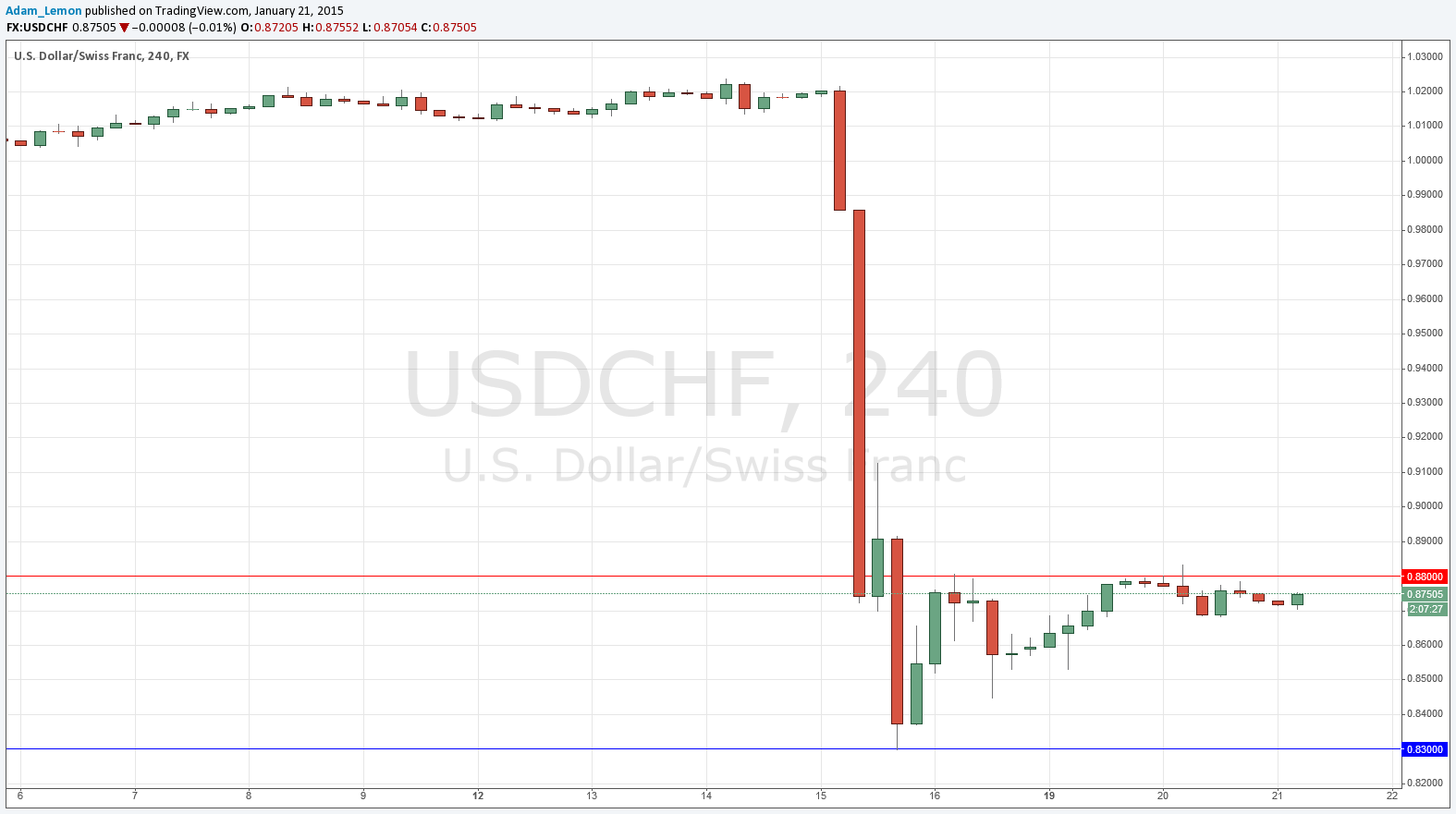 I wrote yesterday that it was likely that the price was going to find it hard to remain above 0.8800, and if it was below that level one hour after the London Open, to look for a short off bearish price action. We did have that short, but we subsequently had a bounce up off the 0.8700 which may be developing into local support. The volatility is calming down meaning that the CHF is stabilising and we can soon resume more normal position sizing when we trade this pair. Beyond the possible support developing at around the 0.8700 level, it is hard to identify any more important technical developments.