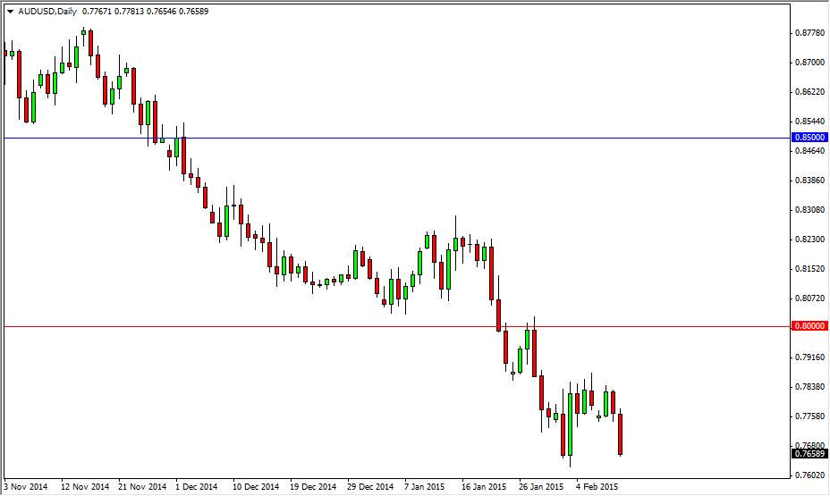 I think that the 0.80 level is the absolute “ceiling” in this market, and with that we are most certainly getting ready to see the downtrend extend. If we break down below the 0.7650 handle, I think it’s only matter time before we hit the 0.75 level, and then possibly much lower levels. If that’s the case, I think that there are a couple of different ways you can trade this market, but the Forex markets seem to be more short-term these days than anything else.