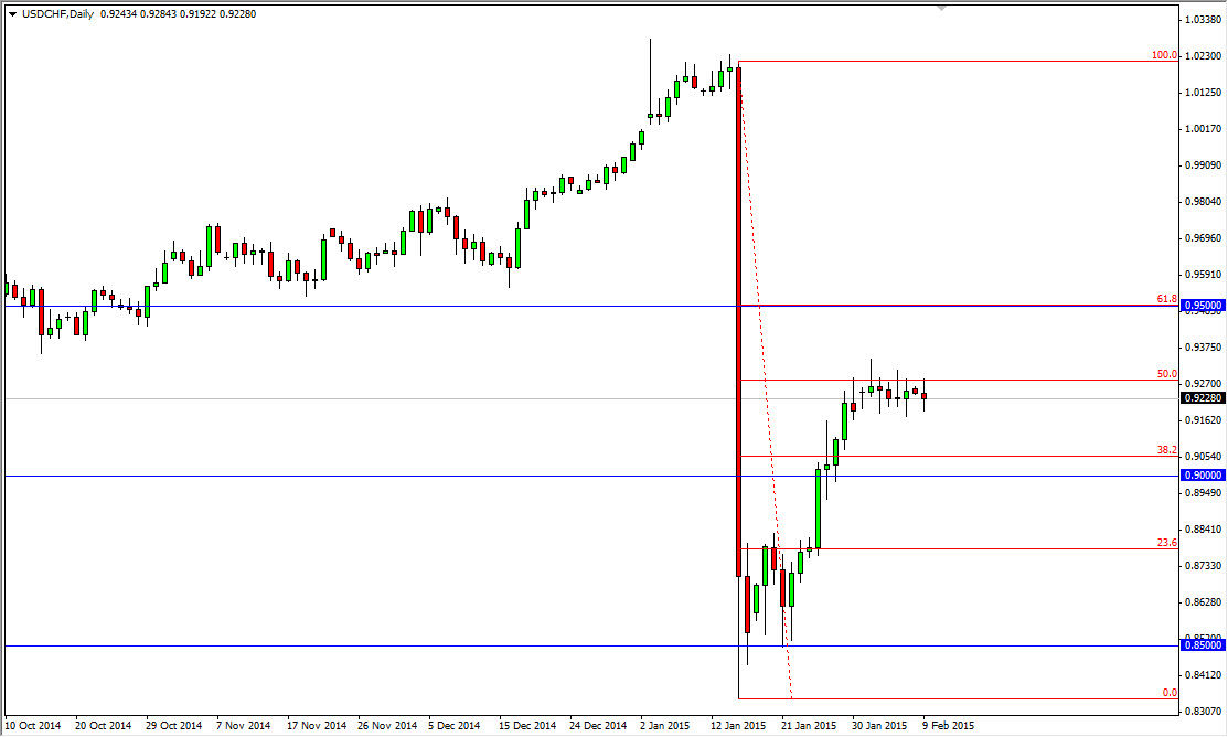 If we broke higher though, the markets would more than likely struggle at the 0.95 level which was previously supportive, and now would be resistive. On top of that, it is the 61.8% Fibonacci retracement level which of course is one that brings in a lot of traders and of itself. Because of that, I don’t have a scenario in which a willing to buy this pair, especially considering that the Swiss National Bank released the currency peg against the Euro, resulting in a rapidly appreciating Franc.