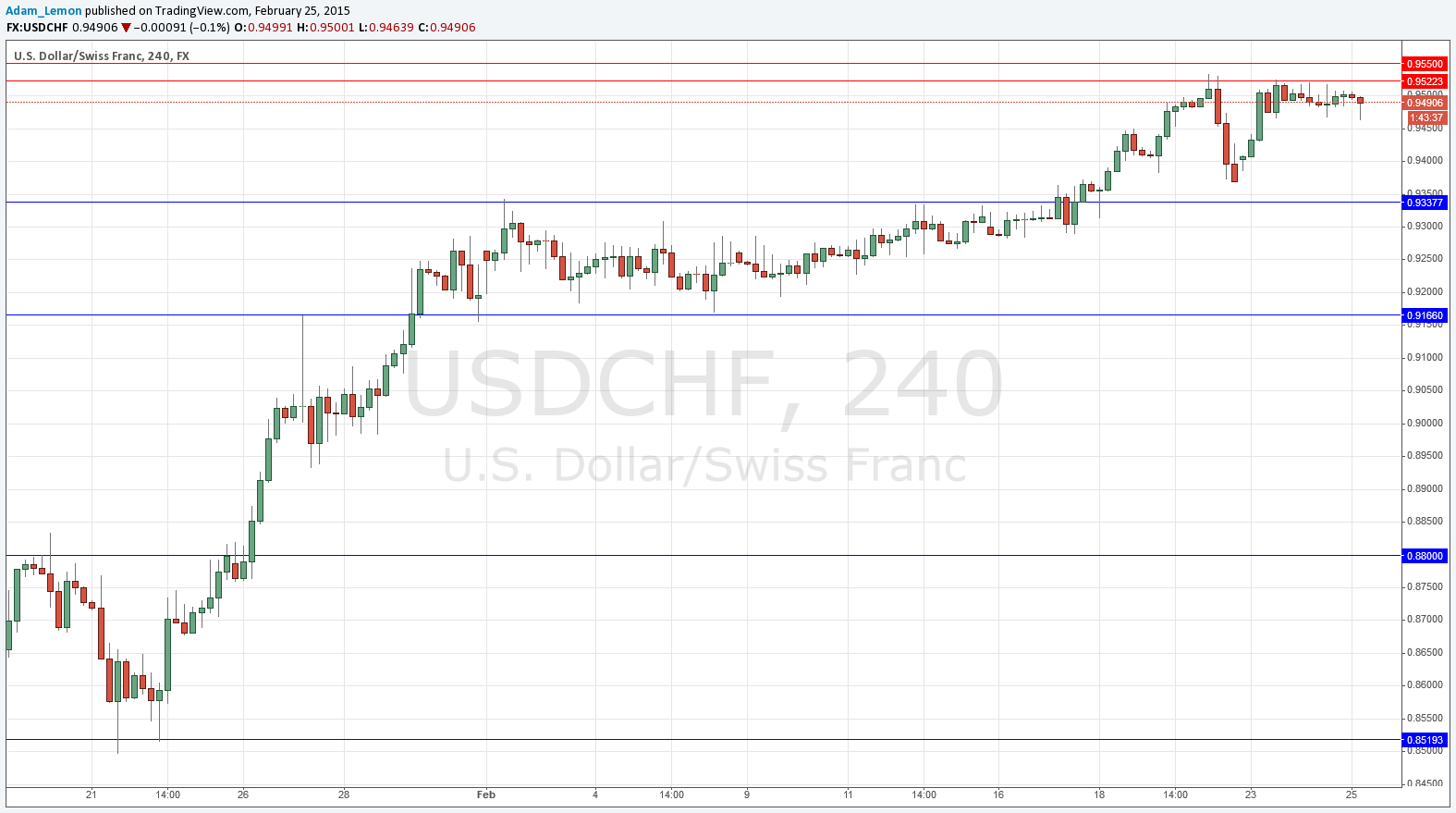 I had thought yesterday that the resistance at 0.9522 would not hold but I was wrong, it is holding, but this is probably due only to the relative weakness of the USD right now.