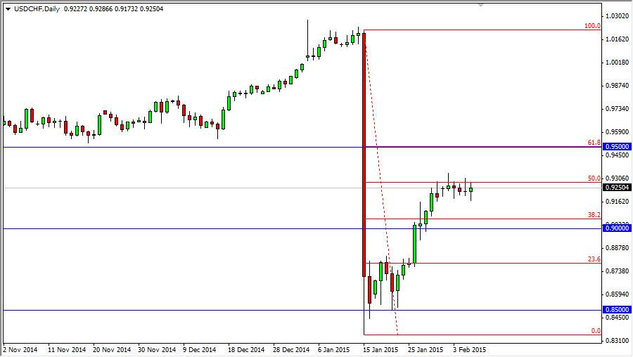 The USD/CHF pair had very little reaction to the nonfarm payroll numbers, as we continue to tread water near the 0.9250 handle. The area of course is the 50% Fibonacci retracement from the massive selloff after the Swiss National Bank got involved in the currency markets and suggested that the currency peg was over. Because of this, I do not have any interest in selling the Swiss franc, so I am only looking to short the Swiss franc related pairs. That being the case, I am looking for a set up in this pair, although I recognize of the US dollar of course is going to be stronger than other currencies such as the Euro. On the other hand, that gives is more stability in this market which of course is easier to take than the volatility we could see in something like the EUR/CHF pair.