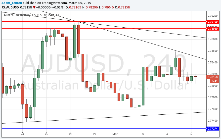 Last Tuesday’s signals were not triggered as the price never reached either 0.7898 or 0.7750.