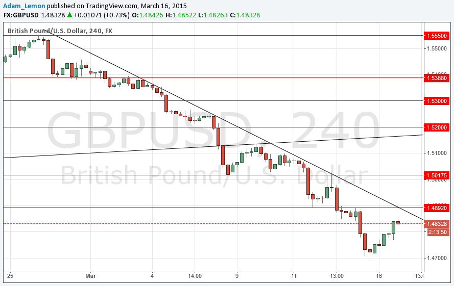 I forecast yesterday that it was very unlikely that the price would reach 1.4892 before the close of the London session, and that forecast turned out to be correct. However there was a surprisingly strong move up yesterday, showing a strengthening of the GBP following its sudden and sharp fall over recent days against the USD.