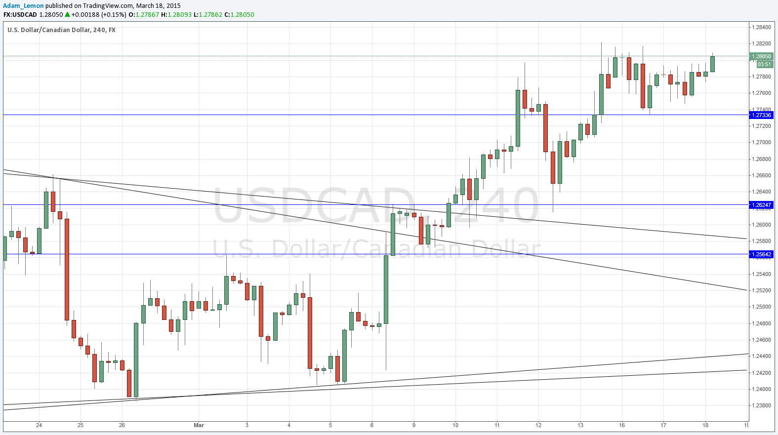 There are high-impact events scheduled today concerning both the CAD and the USD. Regarding the CAD, there will be Wholesale Sales Data at 12:30pm London time. Regarding the USD, at 6pm the U.S. Federal Reserve will be releasing the latest Federal Funds Rate and FOMC Statement and Projections.
