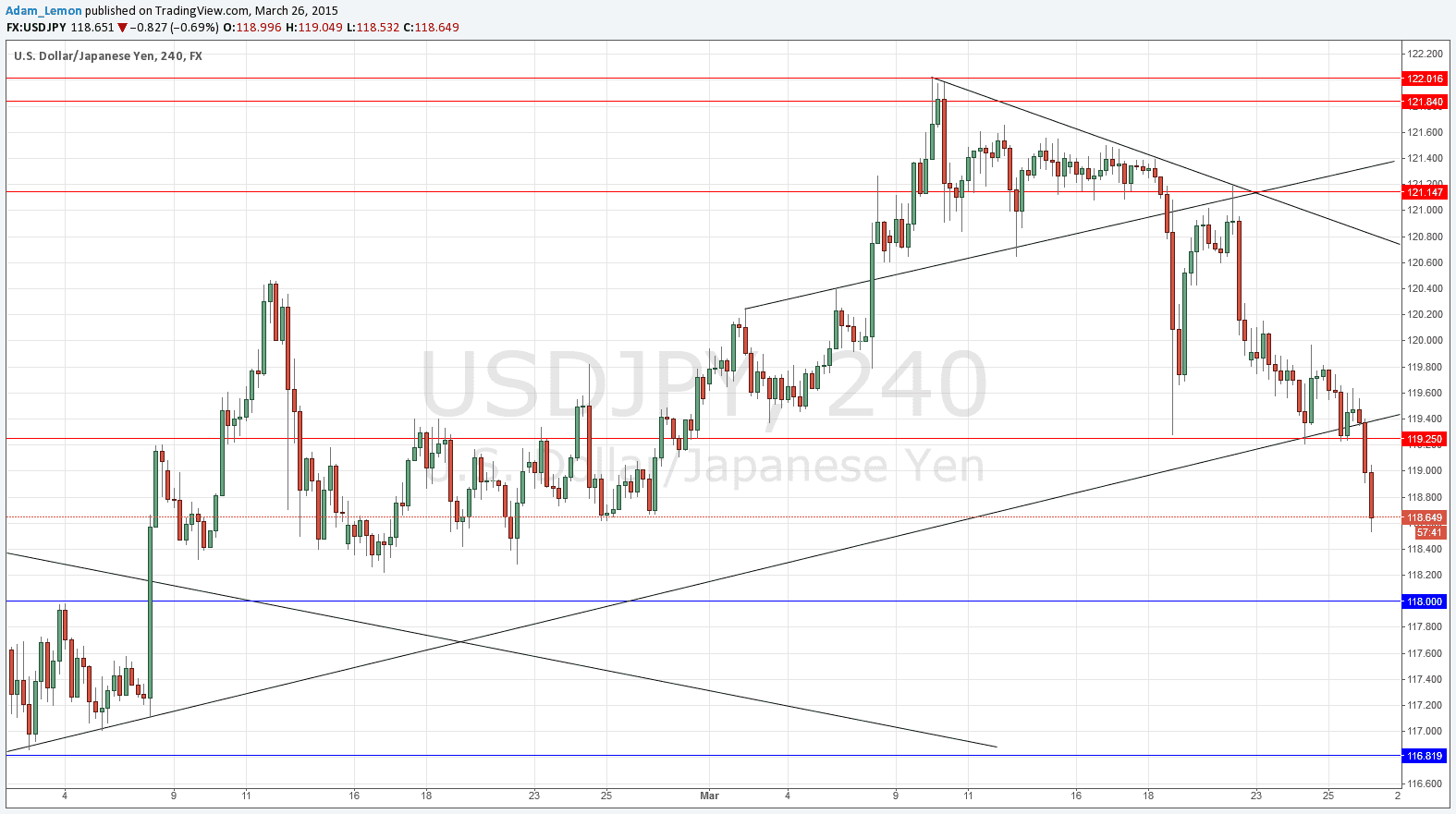 It is probable that a return to the previous support at around 119.25 would see resistance and therefore should be a good location at which to seek a short trade.
