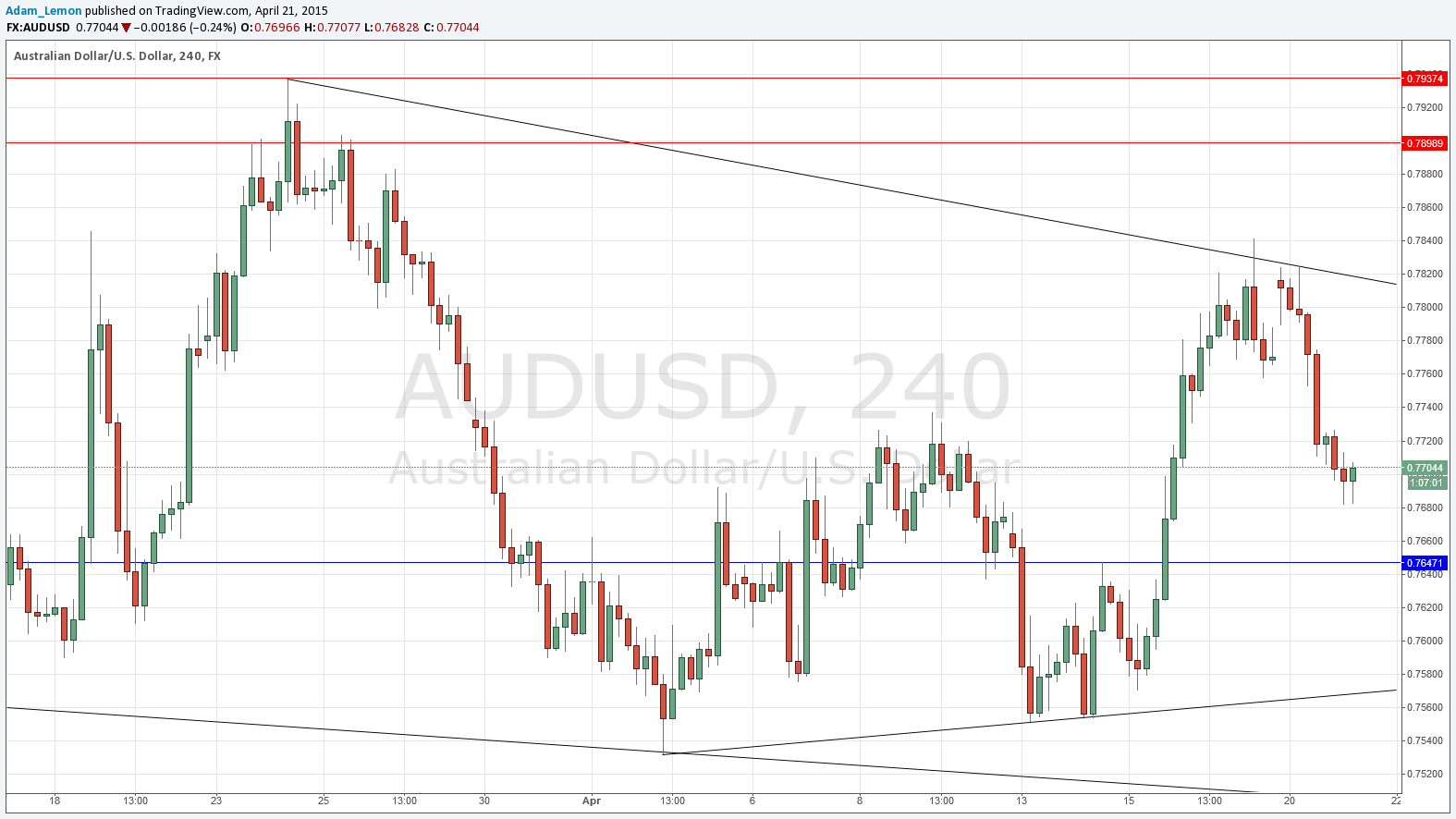 Yesterday’s signals were not triggered as although the price did reach 0.7725, it fell right through without printing any bullish price action on the hourly time frame.