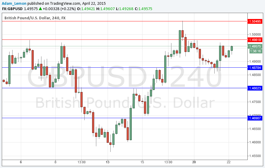 Early yesterday it had looked as though the price broke below the key level of 1.4878, but it subsequently turned around and rose from there, and is now approaching key resistance at 1.4981. There is a wide resistant zone above here stretching all the way up to 1.5050.