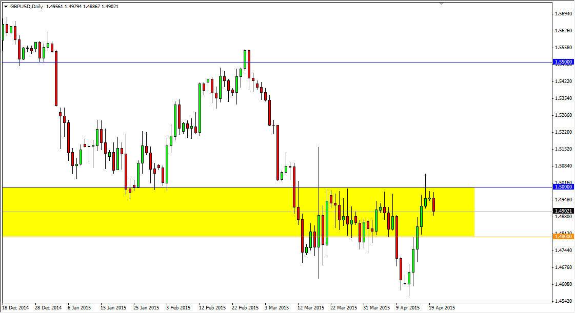 The GBP/USD pair broke down during the Monday session, breaking the bottom of the shooting star that informed on Friday. This is a very negative sign, and quite frankly I really liked where the shooting star formed, the 1.50 level. After all, it’s hard to imagine an area that’s more “round” than that level. I believe that we should continue to see what a bit of bearish pressure, but I’m not foolish enough to believe that the market will simply fall like a rock from here.