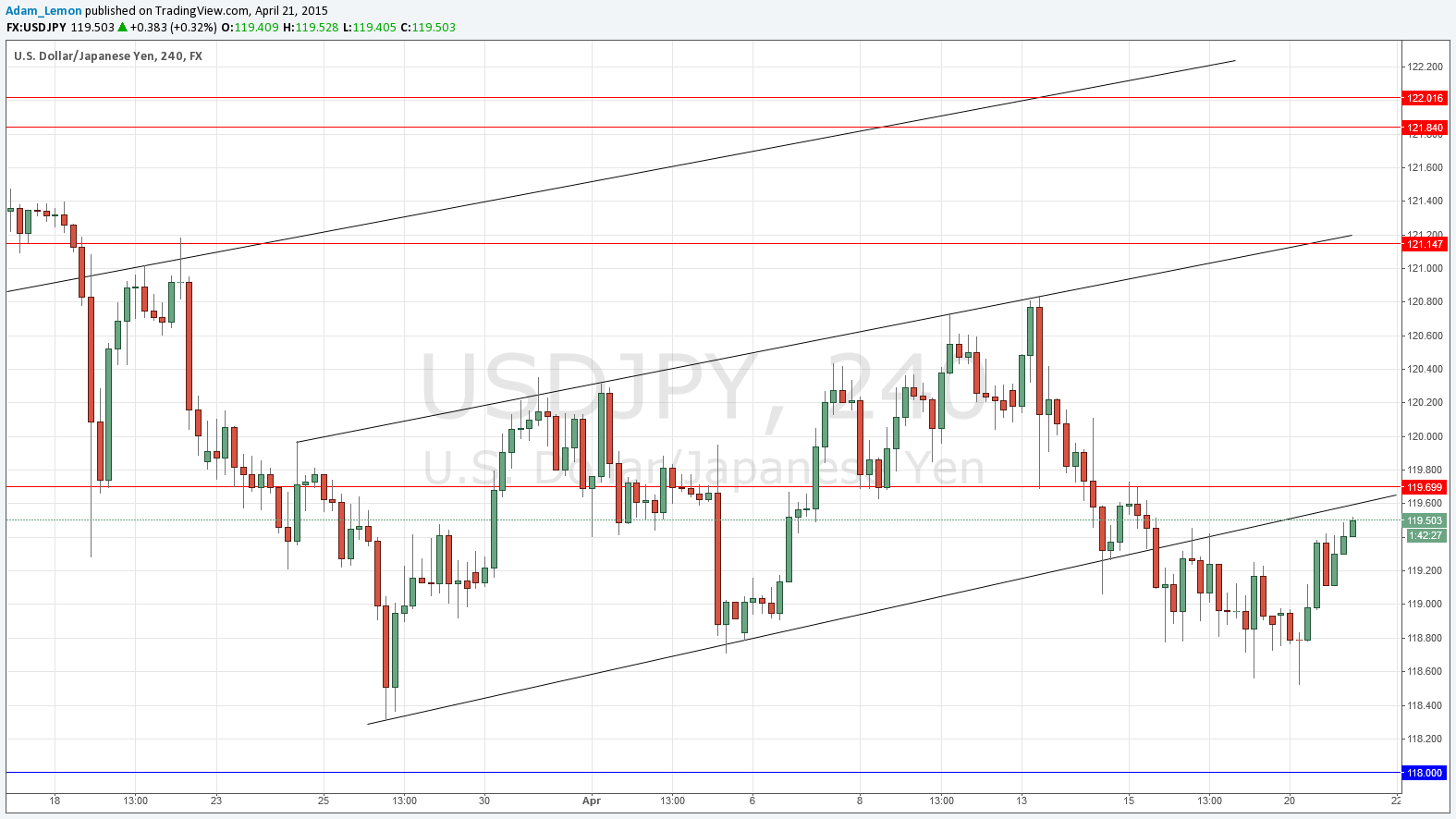 Yesterday’s signals were never triggered as the price did not reach 119.60 or 118.00.