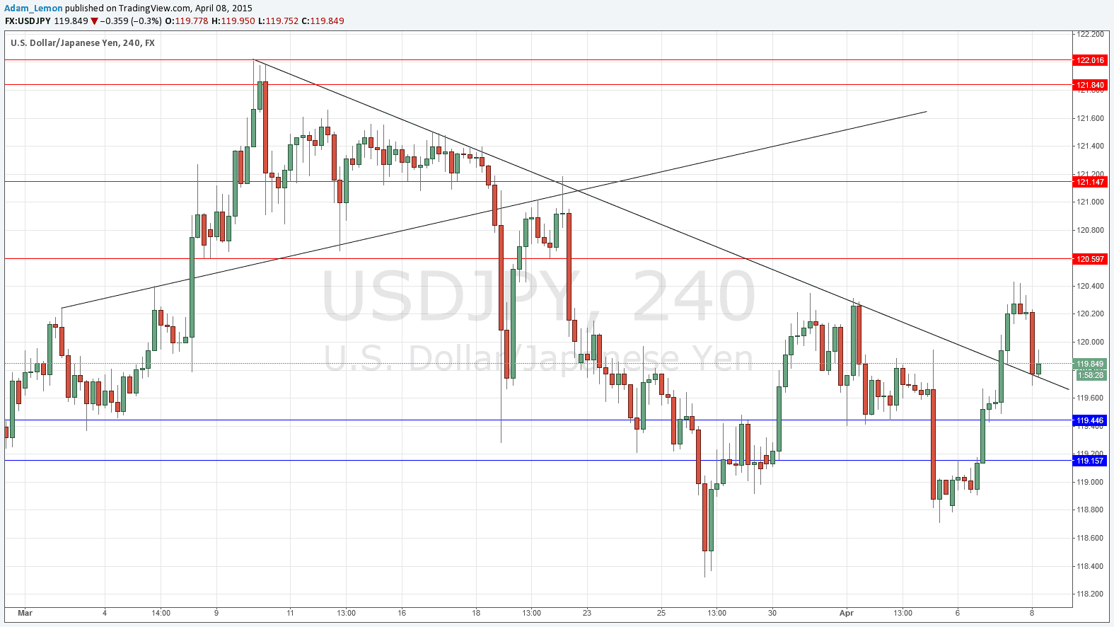 Yesterday’s signals were not triggered as although the price did reach 119.89, there was no bearish reversal there.