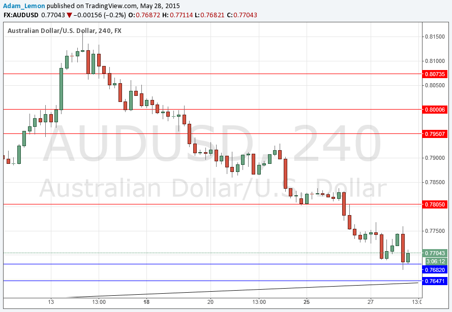 The round number above at 0.7800 should be natural resistance. It was also previously support so it should hold at least for a while.