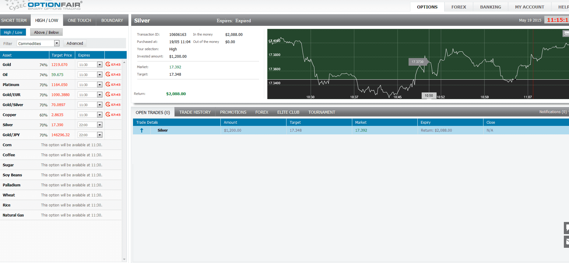 The target price for Silver at the buying time (11:04) was $17.348 for the expiration of 11:15. The Asset closed $17.392 and I made $888.